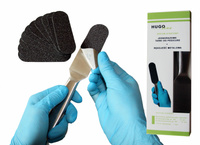 W naszej ofercie dostępne są zestawy nakładek ściernych o różnej ziarnistości, które umożliwiają kompleksowe podejście do pielęgnacji stóp. Każdy z nich zawiera produkty o odmiennej gradacji, co pozwala na dostosowanie intensywności zabiegu do indywidualnych potrzeb klienta. Oferujemy zarówno nakładki do usuwania dużych zrogowaceń, jak i te zdecydowanie delikatniejsze, do wykańczania powierzchni skóry. Mamy też pilniki jednorazowe do paznokci, które są niezbędne podczas zabiegów pedicure.