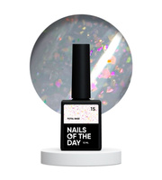 NAILSOFTHEDAY Potal Base 15 – mleczno-biała baza z różowymi holograficznymi płatkami, 10 ml